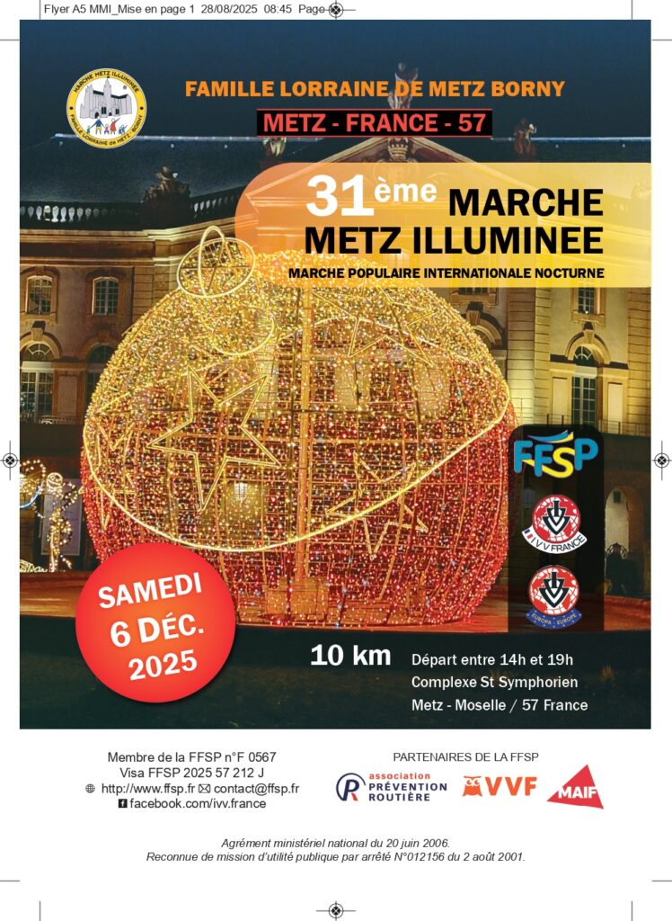 Le samedi 6 décembre - Sortie à Metz pour la marche populaire illuminée et/ou le marché de noël.